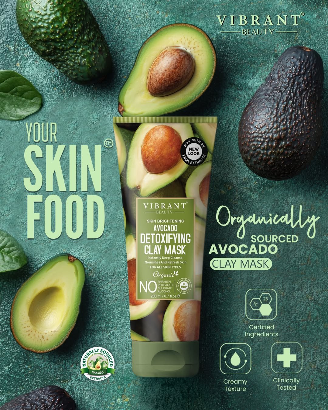 Vibrant Beauty Avocado Detoxifying Clay Mask is the ultimate solution for a deep-cleansing and revitalizing skincare treatment. Enriched with avocado extract and detoxifying clay, this detoxifying clay mask purifies your skin by drawing out impurities and excess oil, while also delivering essential hydration. Ideal for achieving a fresh, clear, and radiant complexion, this mask is a must-have in your skincare regimen.