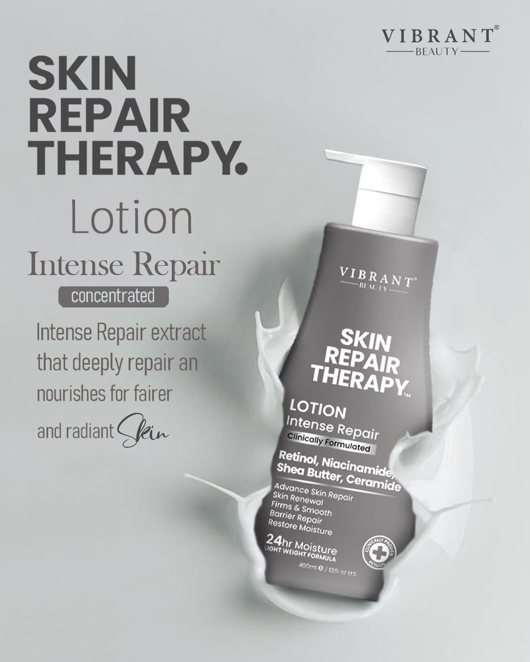 Vibrant Beauty Skin Repair Therapy Intense Repair Lotion is more than just a moisturizer; it is a comprehensive skin health treatment. Formulated with a synergistic blend of restorative ingredients, this intense repair lotion penetrates deep into the dermis to heal and rejuvenate from within. It is the perfect addition to your daily skincare routine for maintaining resilient and vibrant skin.